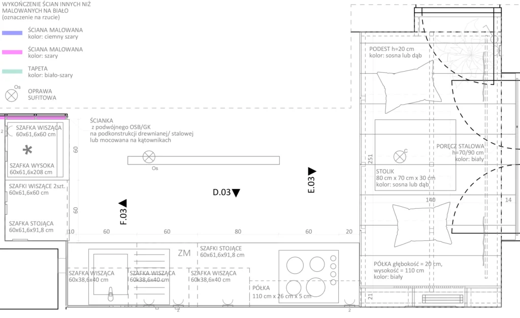 szczegółowo zabudowy kuchni lub szaf pod zamówienie, - zestawienie materiałów i elementów wyposażenia wnętrz wraz z ich opisem, podanymi ilościami oraz linkiem do strony producenta/ sklepu,